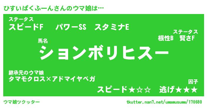 | 欧米人風あだ名 | 『マイケルひすいばくふーん』 |