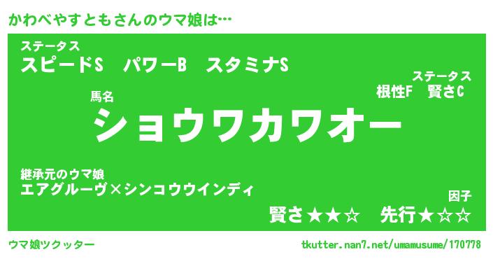 | ヒーロー風カッコイイあだ名 | 『スーパーカワベヤストモ』 |