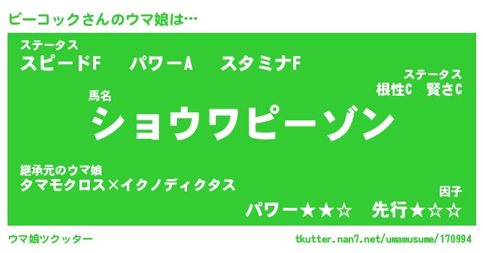 | 伝説のあだ名 | 『伝説のスナイパーピーコック』 |