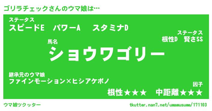 | 男性向けラノベタイトル風あだ名 | 『ゴリラチェックの憂鬱』 |