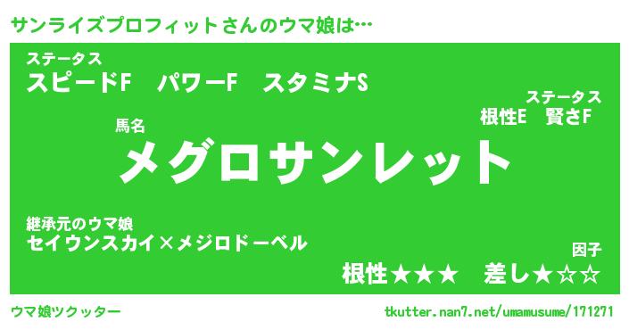 | 伝説のあだ名 | 『伝説のスナイパーサンライズプロフィット』 |