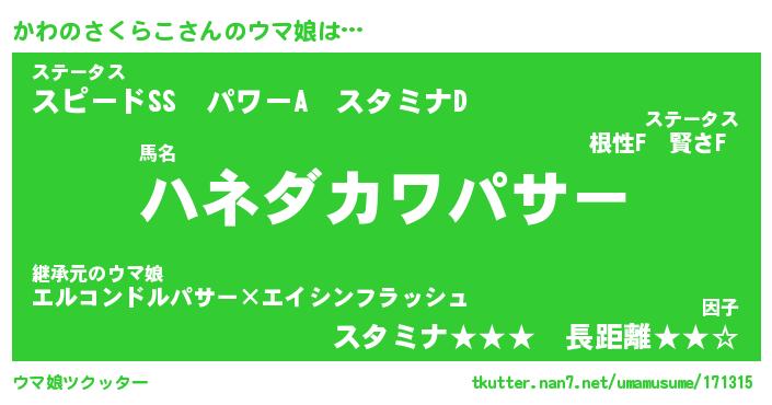 | ポケモン風あだ名 | 『カワチュウ』『カワノダネ』 |