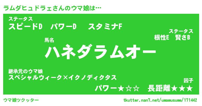 | ポケモン風あだ名 | 『ラムチュウ』『ラムダダネ』 |