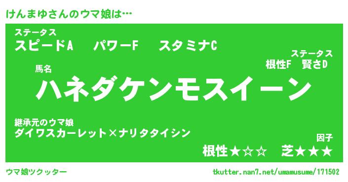 | 欧米人風あだ名 | 『マイケルけんまゆ』『ウサインけんまゆ』 |