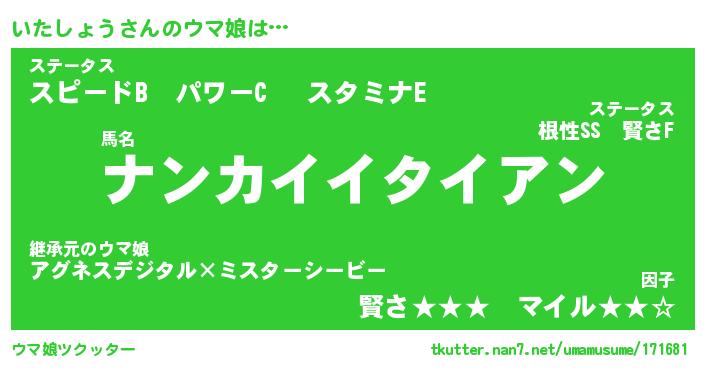 | ポケモン風あだ名 | 『イタチュウ』『イタシダネ』 |