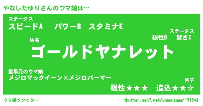 | 男性向けラノベタイトル風あだ名 | 『ヤナシタユリアートオンライン』 |