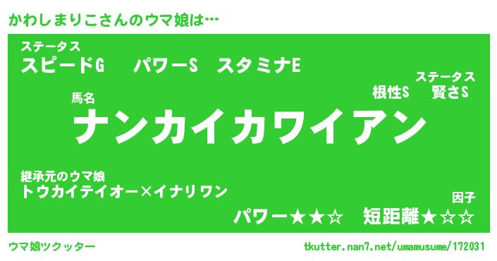 | ポケモン風あだ名 | 『カワチュウ』『カワシダネ』 |