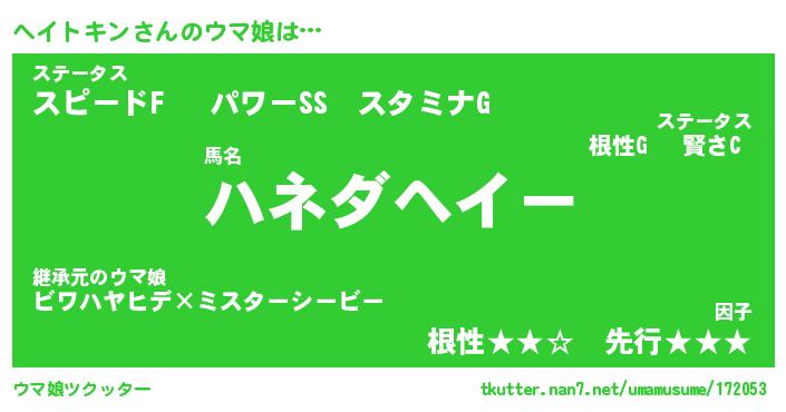 | ヒーロー風カッコイイあだ名 | 『スーパーヘイトキン』『天弓騎士ヘイ』 |