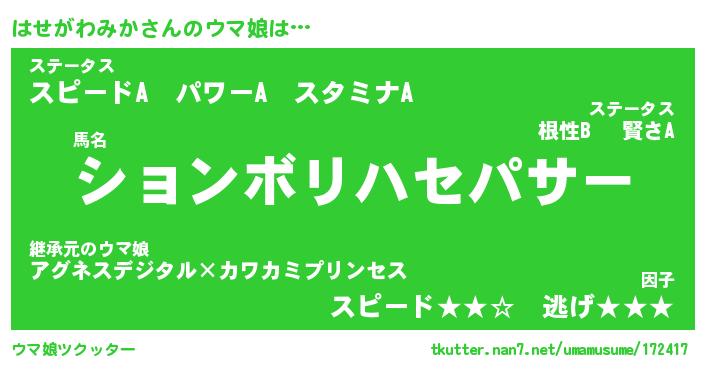 | 自動車の名前っぽいあだ名 | 『ハセティマ』『ハクア』『ヴィッハ』 |