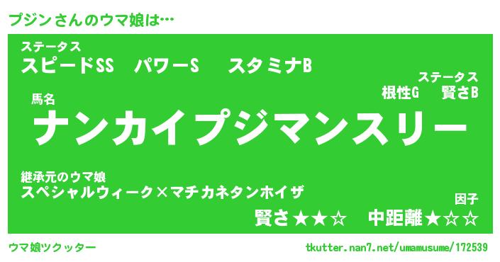 | 男性向けラノベタイトル風あだ名 | 『プジンの憂鬱』 |
