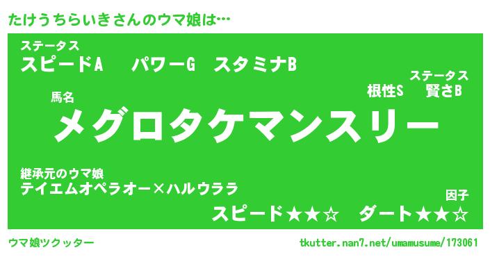 | 2回繰り返すあだ名 | 『たけたけ』『たたけけ』『うねうね』 |
