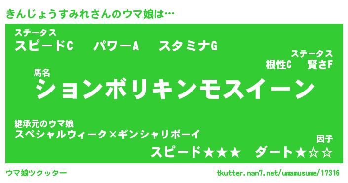 | 欧米人風あだ名 | 『マイケルきんじょうすみれ』 |
