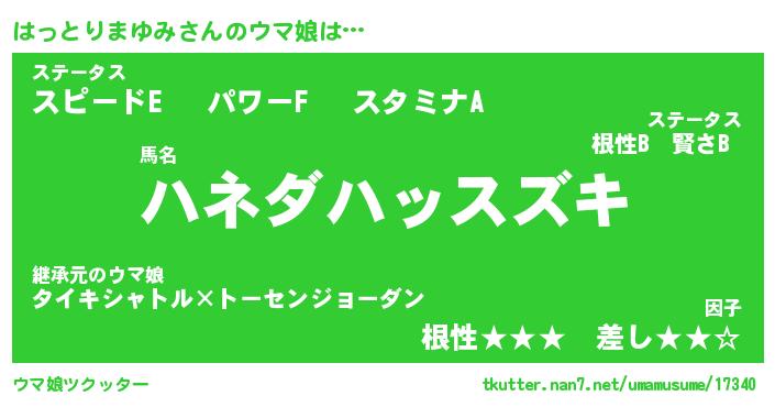 | 男性向けラノベタイトル風あだ名 | 『ハットリマユミアートオンライン』 |