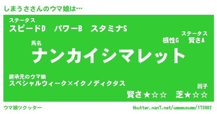 | 意味不明あだ名 | 『ペロリンしまうさ』『永久保存しまうさ』 |
