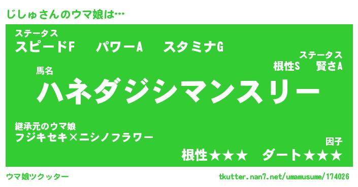| ヘコむあだ名 | 『じしっふぃ~』『つくし』 |