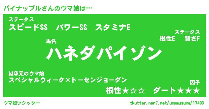 | 自動車の名前っぽいあだ名 | 『パイティマ』『パクア』『パント』 |