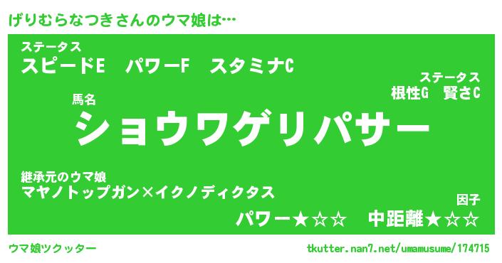 | 2回繰り返すあだ名 | 『げりげり』『げげりり』『ぬるぬる』 |