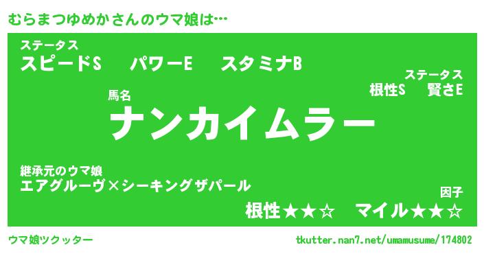 | 男性向けラノベタイトル風あだ名 | 『むらまつゆめかの憂鬱』 |