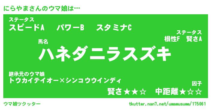 | ポケモン風あだ名 | 『ニラチュウ』『ニラヤダネ』 |