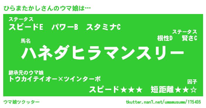 | ヘコむあだ名 | 『ひらにゅー』『つくし』『ひら太郎』 |