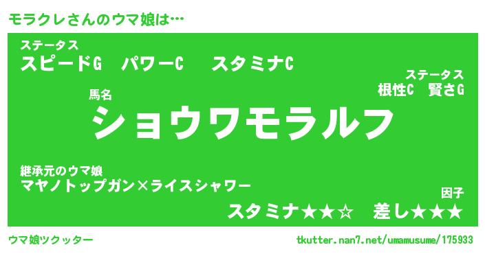 | 意味不明あだ名 | 『ペロリンモラクレ』『永久保存モラクレ』 |