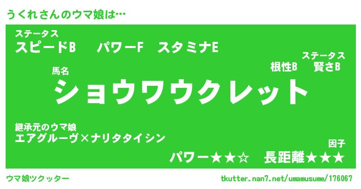 | ポケモン風あだ名 | 『ウクチュウ』『ウクレダネ』 |