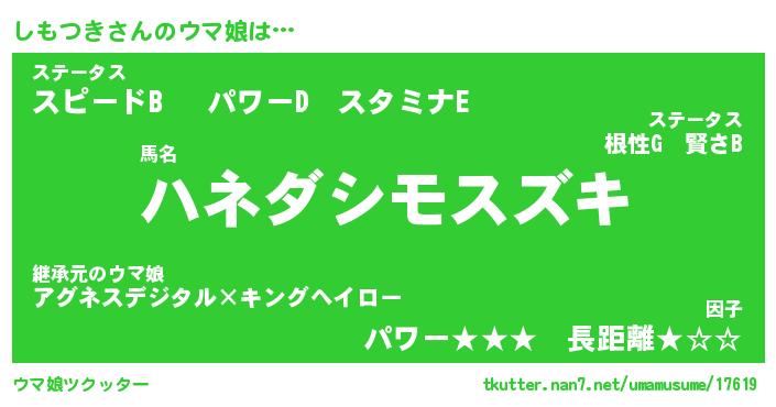 | 意味不明あだ名 | 『ペロリンしもつき』『永久保存しもつき』 |