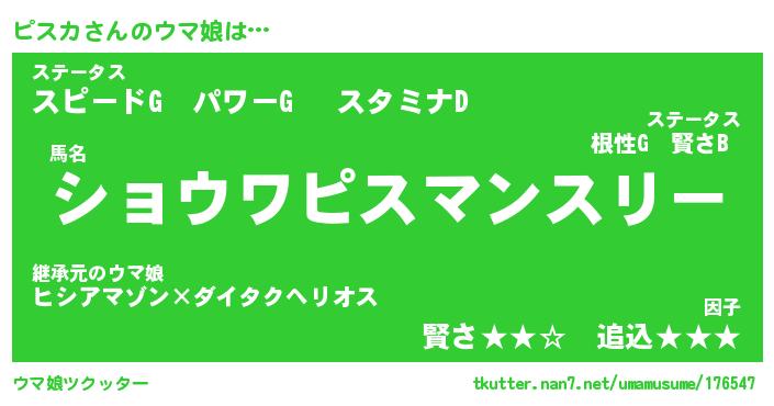 | ポケモン風あだ名 | 『ピスチュウ』『ピスカダネ』 |