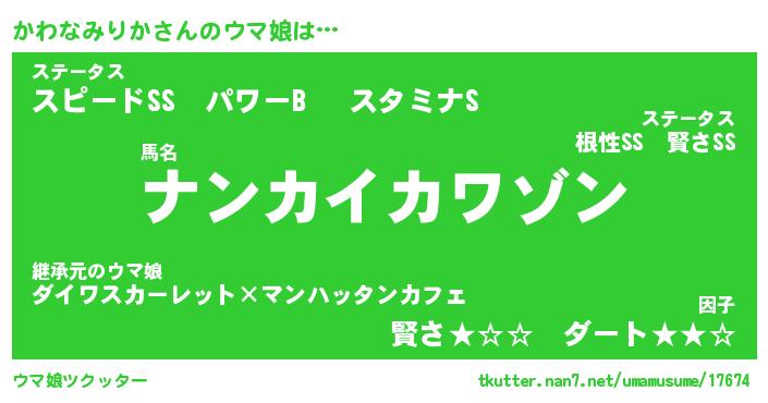 | ポケモン風あだ名 | 『カワチュウ』『カワナダネ』 |