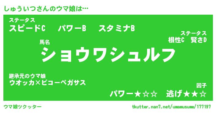 | ファンタジー風あだ名 | 『シュフェル』『エターナルシュウイツー』 |
