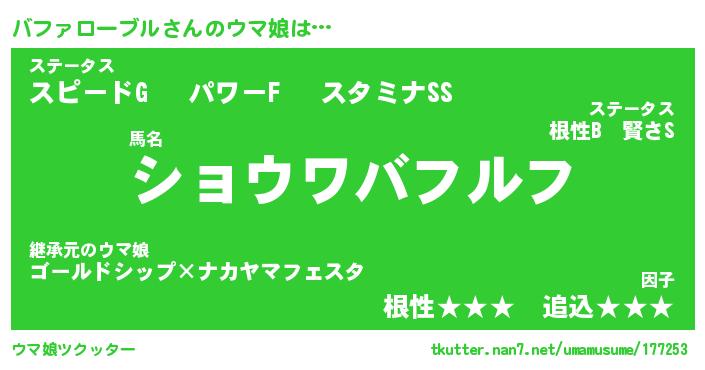 | ポケモン風あだ名 | 『バフチュウ』『バファダネ』 |