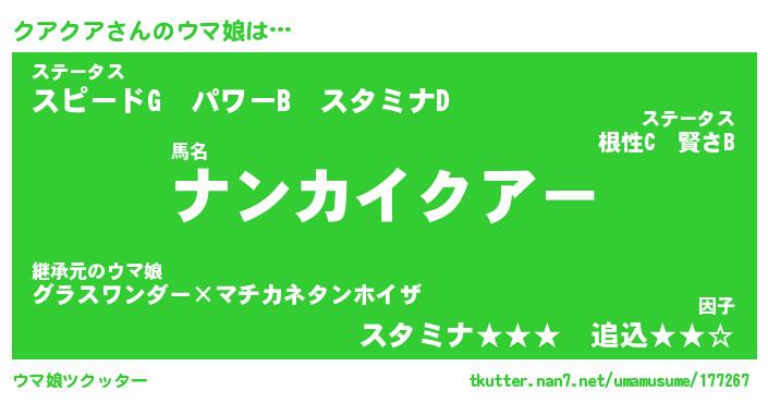 | ファンタジー風あだ名 | 『クアフェル』『エターナルクアクアー』 |