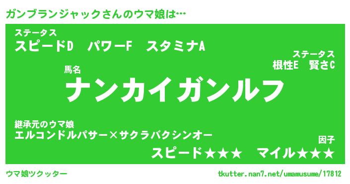 | 男性向けラノベタイトル風あだ名 | 『ガンブランジャックの憂鬱』 |