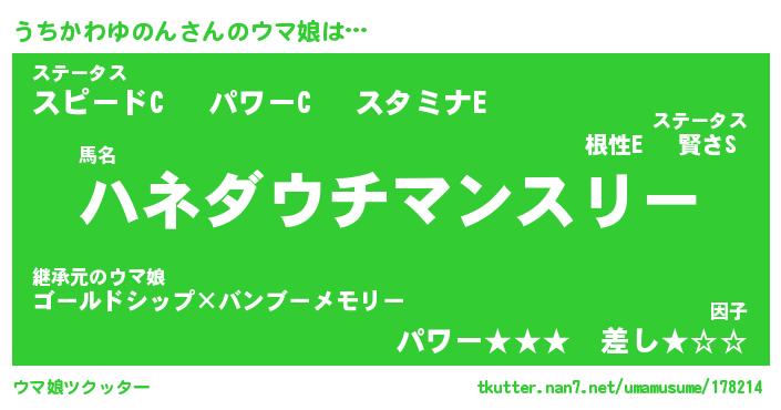 | ポケモン風あだ名 | 『ウチチュウ』『ウチカダネ』 |