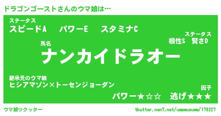 | 男性向けラノベタイトル風あだ名 | 『ドラゴンゴーストの憂鬱』 |