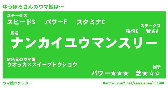 | 意味不明あだ名 | 『ペロリンゆうほろ』『永久保存ゆうほろ』 |