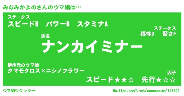 | ファンタジー風あだ名 | 『ミナフェル』『ファントムミナス』 |