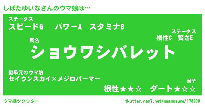 | ヒーロー風カッコイイあだ名 | 『スーパーシバタユイナ』『天弓騎士シバ』 |