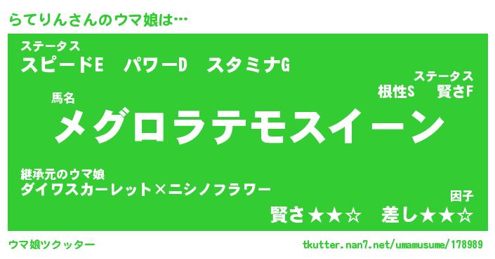 | 意味不明あだ名 | 『ペロリンらてりん』『永久保存らてりん』 |