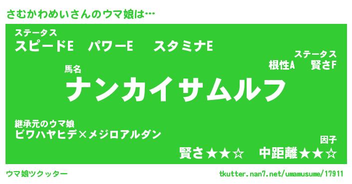 | ヒーロー風カッコイイあだ名 | 『スーパーサムカワメイ』『天弓騎士サム』 |