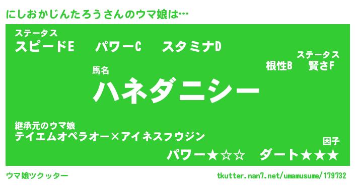 | ポケモン風あだ名 | 『ニシチュウ』『ニシオダネ』 |