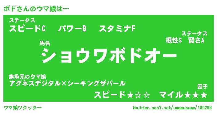 | ヘコむあだ名 | 『ボドにー』『豆乳』『ボドお』 |