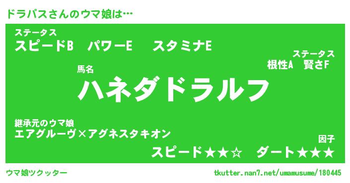 | ポケモン風あだ名 | 『ドラチュウ』『ドラパダネ』 |