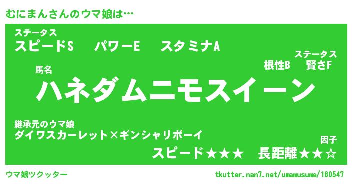 | 意味不明あだ名 | 『ペロリンむにまん』『永久保存むにまん』 |