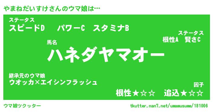 | 欧米人風あだ名 | 『マイケルやまねだいすけ』 |