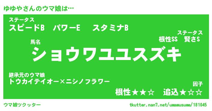 | 意味不明あだ名 | 『ペロリンゆゆや』『ゆゆやフォーエバー』 |