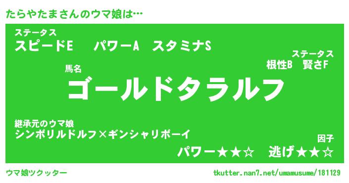 | ヒーロー風カッコイイあだ名 | 『スーパータラヤタマ』『黄金騎士タラ』 |