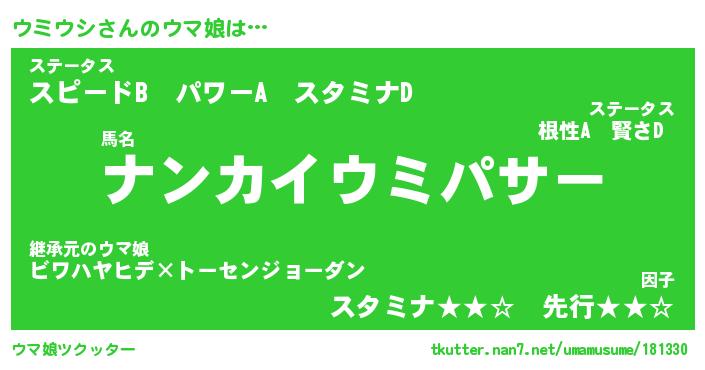 | ポケモン風あだ名 | 『ウミチュウ』『ウミウダネ』 |
