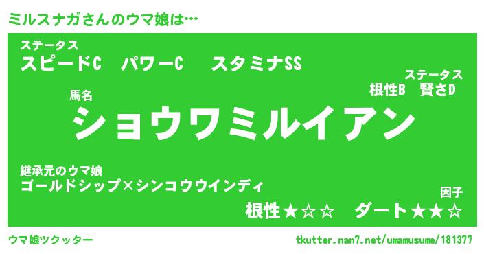 | ヒーロー風カッコイイあだ名 | 『スーパーミルスナガ』『天弓騎士ミル』 |