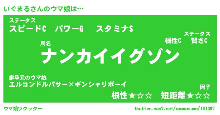 | 意味不明あだ名 | 『ペロリンいぐまる』『永久保存いぐまる』 |